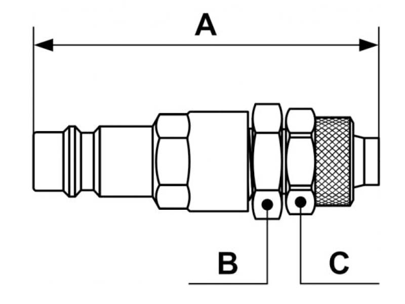 | Ø wewn. węża [mm] | Ø zewn. węża [mm] | przelot (DN) | całkowita długość (A) [mm] | rozmiar klucza (B) | rozmiar kontr. nakrętki (C) | min. ciśnienie pracy [bar] | max. ciśnienie pracy [bar] | nr artykułu |