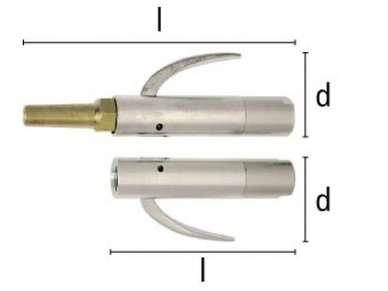 Pneumatyczny zawór upustowy do przedmuchiwania z aluminium lub mosiądzu, z wymienną dyszą wykonaną ze stali ocynkowanej.