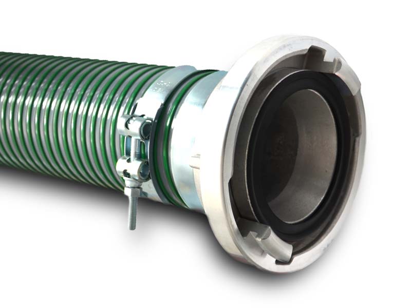 Przewód TRANSFORT SE/STORZ wykonano z tworzywa sztucznego (PVC) z powłoką antyścierną z PU na zewnątrz, ze złączami z aluminium kutego z uszczelkami z NBR oraz z obejmami ze stali ocynkowanej.