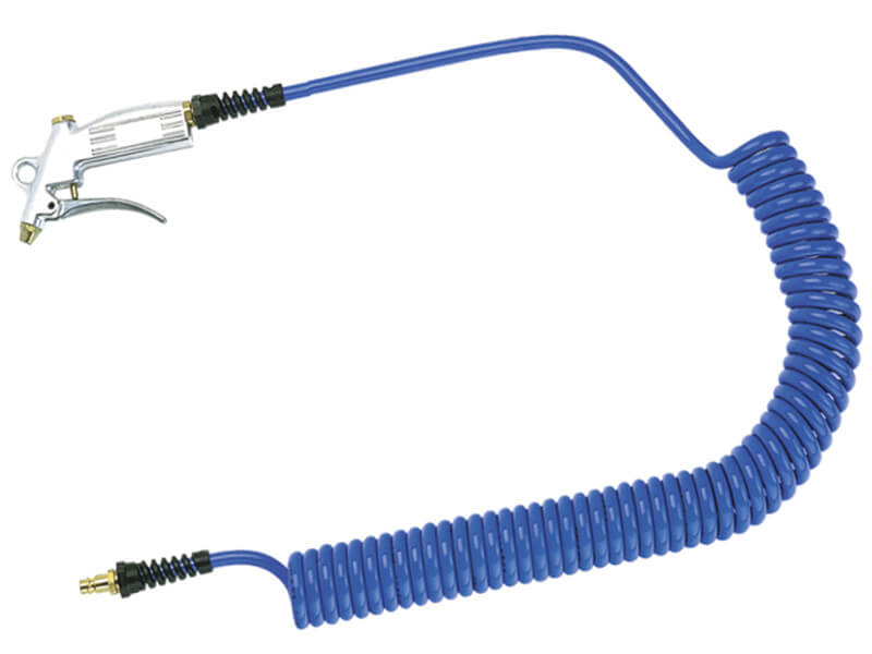 Przewód zbudowany z węża spiralnego z Poliuretanu opartego na poliestrach, z pokryciem poliamidowym, uzbrojony w pistolet do przedmuchiwania wykonany z aluminium i stali ocynkowanej, po stronie z dłuższym końcem gładkim, oraz wtyk szybkozłączki DN 7,2 z Serii ES wykonany z mosiądzu gładkiego MS 58.
