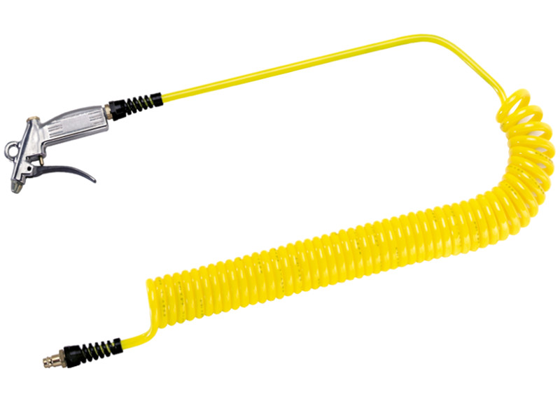 Przewód zbudowany z węża spiralnego z Poliuretanu opartego na poliestrach, z pokryciem poliamidowym, uzbrojony w pistolet do przedmuchiwania wykonany z aluminium i stali ocynkowanej, po stronie z dłuższym końcem gładkim, oraz wtyk szybkozłączki DN 7,2 z Serii ES wykonany z mosiądzu gładkiego MS 58.