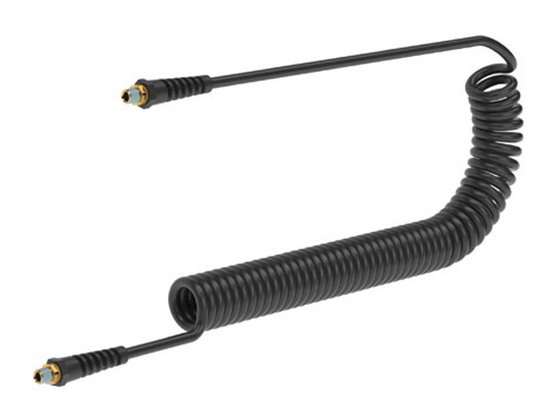 Antystatyczny przewód spiralny ze skręcanymi złączami z gwintami zewnętrznymi, całkowicie zmontowany przez producenta. Przewody przechodzą wewnętrzną kontrolę jakości, dzięki czemu klient ma pewność pracy z przewodem najwyższej jakości. Wąż wykonany z poliuretanu na bazie polieteru, ze wzmocnionym pokryciem, zapewnia długotrwałą żywotność. Każdy zestaw posiada indywidualne opakowanie dzięki czemu zapewniony jest czysty i bezpieczny transport. Przeznaczony do transportu sprężonego powietrza i wody. Stosowany w strefach zagrożonych wybuchem m. in. przy produkcji i przesyle delikatnych części elektronicznych, jak również przy obróbce powierzchni, w przemyśle, górnictwie, wiertnictwie. Dzięki wysokiej odporności na ścieranie można nim przesyłać drobne elementy urządzeń elektronicznych. Przewód może być stosowany do niewielkiego podciśnienia.