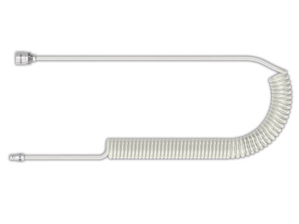 Przewód spiralny MODY CLEAN CONNECT z Poliuretanu opartego na poliestrach, z pokryciem poliamidowym, uzbrojony w szybkozłączki Typ ESE z wolnym przelotem, DN 7,2 wykonane ze Stali Szlachetnej.