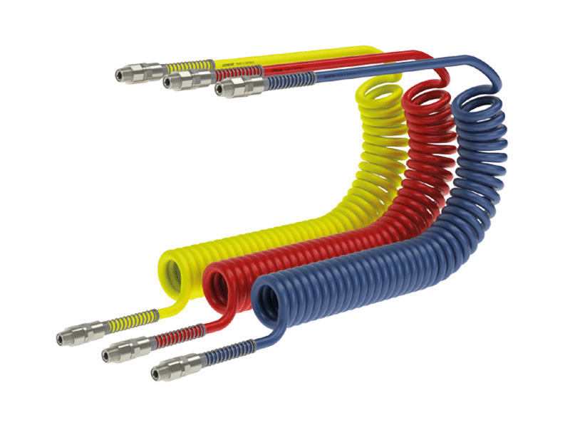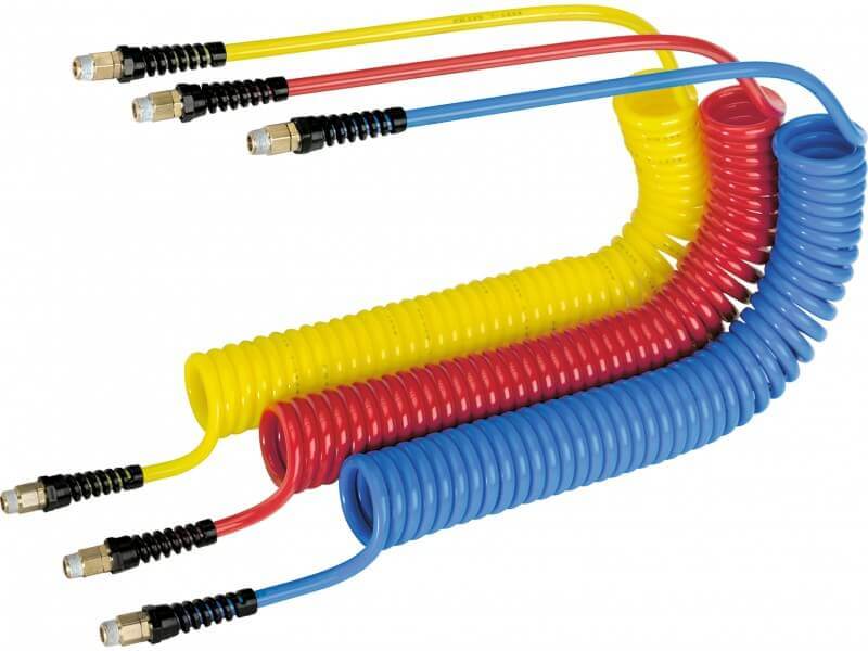 Przewód spiralny MODY ze złączami obrotowymi z gwintami zewnętrznymi, całkowicie zmontowany przez producenta. Przewody przechodzą wewnętrzną kontrolę jakości, dzięki czemu klient ma pewność pracy z przewodem najwyższej jakości. Wąż wykonany z poliuretanu na bazie poliestrów, ze wzmocnionym pokryciem, zapewnia długotrwałą żywotność. Każdy zestaw posiada indywidualne opakowanie dzięki czemu zapewniony jest czysty i bezpieczny transport. Przeznaczony do transportu sprężonego powietrza i mediów płynnych w przemyśle, warsztatach samochodowych i rzemieślniczych. Stosowany w pneumatyce, automatyce, technice pomiarowej i sterującej, motoryzacji, budownictwie, garażach, myjniach samochodowych. Przewód doskonale sprawdza się również w transporcie środków myjących w myjniach samochodowych, w tym agresywnych chemicznie środków do czyszczenia felg aluminiowych.