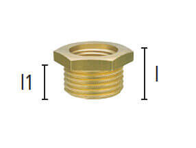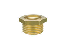 Nypel redukcyjny z gwintami zewnętrznym i wewnętrznym, wykonany z mosiądzu (MS 58).