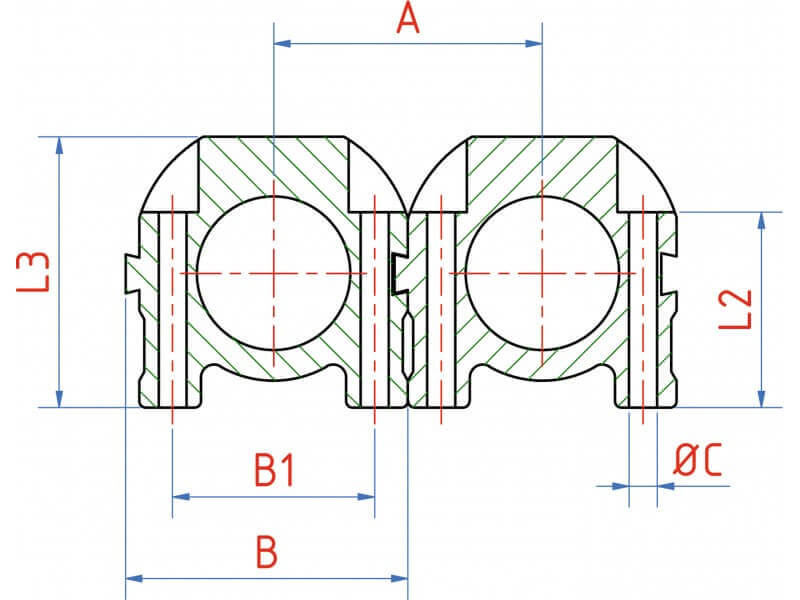 | kolor | wejście | wyjście | długość całkowita [mm] | B [mm] | L1 [mm] | L2 [mm] | L3 [mm] | L4 [mm] | c [mm] | A [mm] | D [mm] | B1 [mm] | waga [g] | nr artykułu |