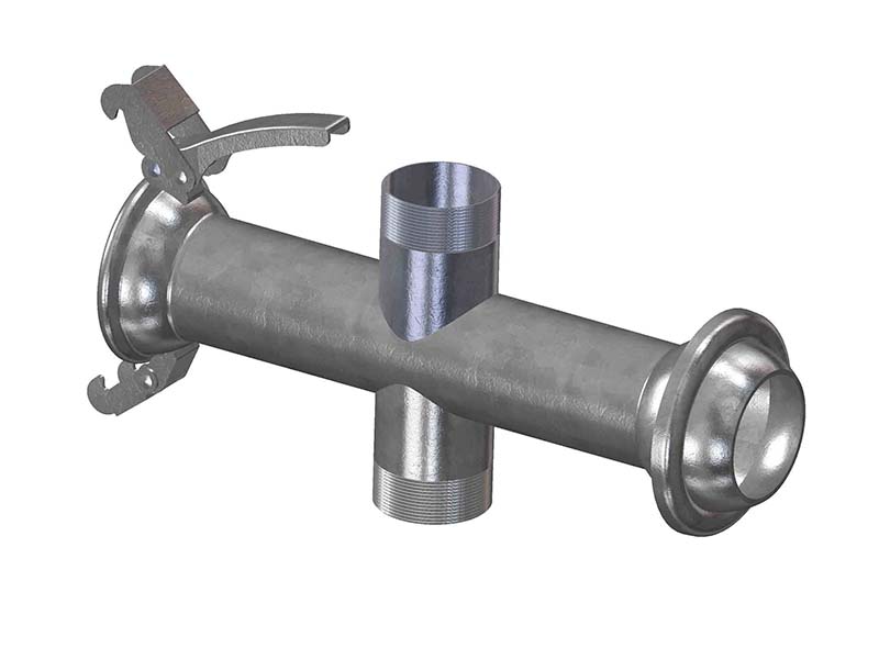 Element posiada przeciwstawnie ustawione gniazdo żeńskie, z dwoma zaczepami oraz wtyk męski. Dwa przyłącza gwintowane zewnętrznie ustawione w jednej osi. Złącze służy do rozbudowy instalacji i systemów przesyłowych. Gwinty zewnętrzne zgodny z ISO 228, rurowe, walcowe BSP.