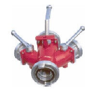 Rozdzielacz trójdrożny z aluminiowymi złączami "Storz" (Strażackie), z zaworami kulowymi i z uszczelkami z NBR.