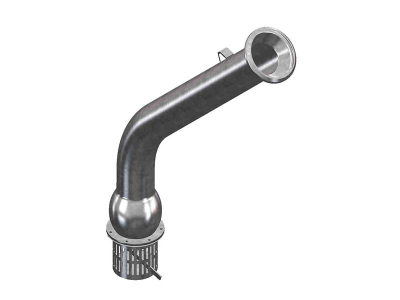 Kątowa rura z koszem ssawnym z zaworem z kielichem do systemu złączy BAUER typ B67F wykonany ze stali ocynkowanej, z gumową uszczelką z mieszanki NR/SBR (na życzenie EPDM).