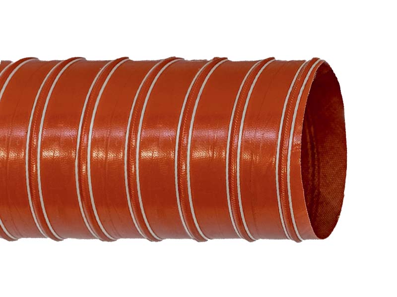 Wąż SILDUCT 2S wykonano z dwóch warstw tkanin z włókien szklanych powlekanych silikonem ze spiralą ze stali ocynkowanej i podwójnym kordem z włókien szklanych.