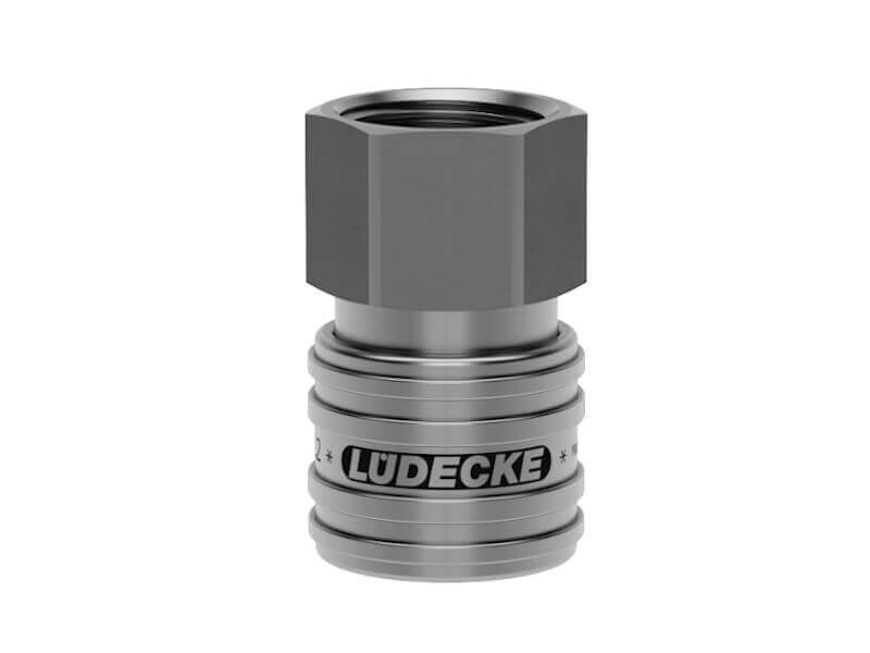 Gniazdo szybkozłącza dwustronnie odcinającego z gwintem wewnętrznym wykonane ze stali szlachetnej (nierdzewnej) i uszczelnieniem z Vitomu (FKM).