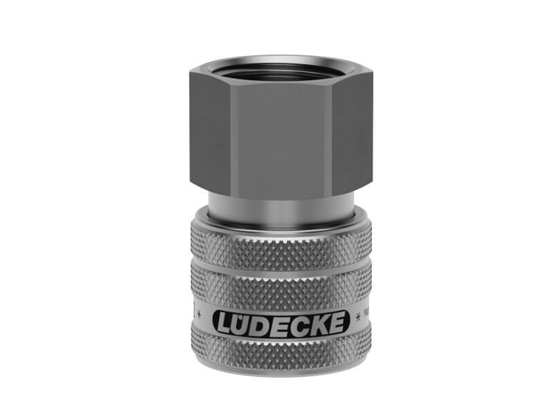 Szybkozłączki z serii ESER o rozmiarze DN 7,2 przeznaczone są do zastosowania w wielu aplikacjach technicznych i przemysłowych do przesyłu sprężonego powietrza oraz agresywnych i wymagających mediów płynnych i gazowych. Część I posiada z jednej strony gniazdo, a z drugiej znormalizowany gwint wewnętrzny. Moletowanie (radełkowanie) powierzchni tulei odłączającej jest standardowym wykończeniem w większości szybkozłączek LUDECKE, stosowanym w celu łatwiejszej obsługi wpinania i rozłączania szybkozłączek. Złącze to jest jednocześnie zaworem jednostronnie odcinającym, co zapobiega wydostawaniu się medium w przypadku rozpięcia przewodu i nie wymaga dodatkowego zaworu zamykającego instalacje w celu jej rozpięcia. Odłączanie i wpinanie przewodów w tym systemie jest intuicyjnie proste i szybkie, możliwe do wykonania jedną ręką. Według poniższej instrukcji: