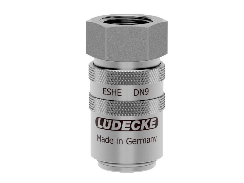 Szybkozłączki z serii ESHE o DN 9 i średnicy wtyku 13 mm charakteryzują się bardzo wysokim natężeniem przepływu przy jednoczesnym niskim spadku ciśnienia. Część I (IAB) posiada z jednej strony gniazdo, a z drugiej gwint wewnętrzny. Gniazda te w wersji z zaworem można łączyć zarówno z wtykami z zaworem, jak i bez, gdyż posiadają one iglicę, która otworzy zawór wtyku. Gniazda bez zaworu, można stosować tylko z wtykami bez zaworu. W zależności od zastosowanych wersji z zaworami, lub bez, przewody przy rozpięciu będą ciekły (bez zaworu) lub medium zostanie w przewodzie (zawór odcinający).