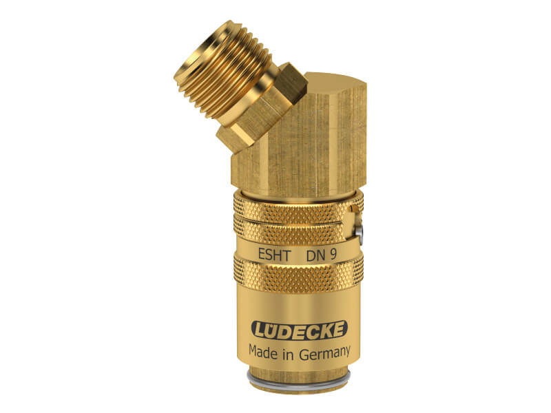 Szybkozłączki z serii ESHT o DN 9 i średnicy wtyku 13 mm charakteryzują się bardzo wysokim natężeniem przepływu przy jednoczesnym niskim spadku ciśnienia. Część AL45AB posiada z jednej strony gniazdo, a z drugiej gwint zewnętrzny zakończony wewnętrznym stożkiem wg DIN 3863, pod kątem 45°. Gniazda te w wersji z zaworem można łączyć zarówno z wtykami z zaworem, jak i bez, gdyż posiadają one iglicę, która otworzy zawór wtyku. W wersji z zaworami, przewody przy rozpięciu nie będą ciekły, a medium zostanie w przewodzie. Można stosować wtyki z serii ESH.
