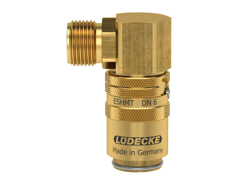 Szybkozłączki z serii ESHMT o DN 6 i średnicy wtyku 9 mm charakteryzują się bardzo wysokim natężeniem przepływu przy jednoczesnym niskim spadku ciśnienia. Część AL-90AB posiada z jednej strony gniazdo, a z drugiej gwint zewnętrzny zakończony wewnętrznym stożkiem wg DIN 3863, pod kątem 90°. Gniazda te w wersji z zaworem można łączyć zarówno z wtykami z zaworem, jak i bez, gdyż posiadają one iglicę, która otworzy zawór wtyku. W wersji z zaworem przewody przy rozpięciu nie będą ciekły, a medium zostanie w przewodzie.
