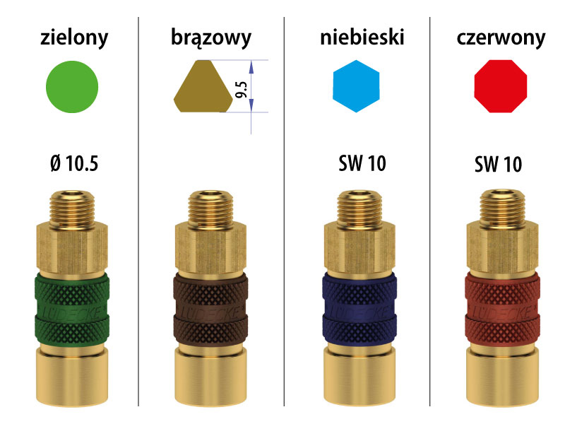 Poniżej przedstawiono instrukcję obsługi i zasadę działania kolorowych i kodowanych szybkozłączek.