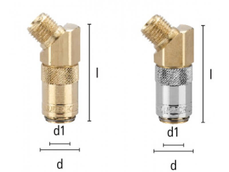 Szybkozłączki z serii ESDM o DN 6 i średnicy wtyku 9,4 mm charakteryzują się bardzo wysokim natężeniem przepływu przy jednoczesnym niskim spadku ciśnienia. Część A-45AB posiada z jednej strony gniazdo, a z drugiej gwint zewnętrzny pod kątem 45°. Gwinty z wewnętrznym stożkiem wg DIN 3863. Gniazda te w wersji z zaworem można łączyć zarówno z wtykami z zaworem, jak i bez, gdyż posiadają one iglicę, która otworzy zawór wtyku. W wersji z zaworami przewody przy rozpięciu nie będą ciekły, a medium zostanie w przewodzie.
