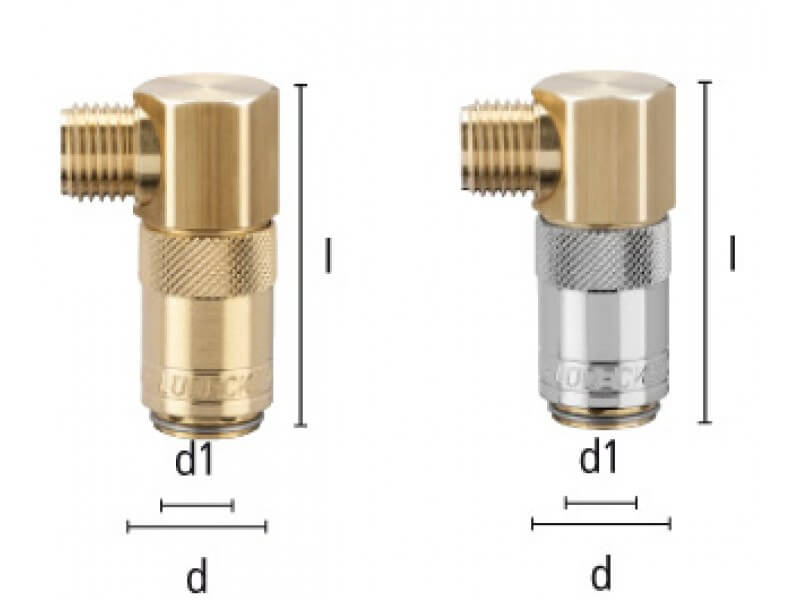 szybkozłączka, gniazdo (cz. żeńska) →← wtyk (cz. męska)