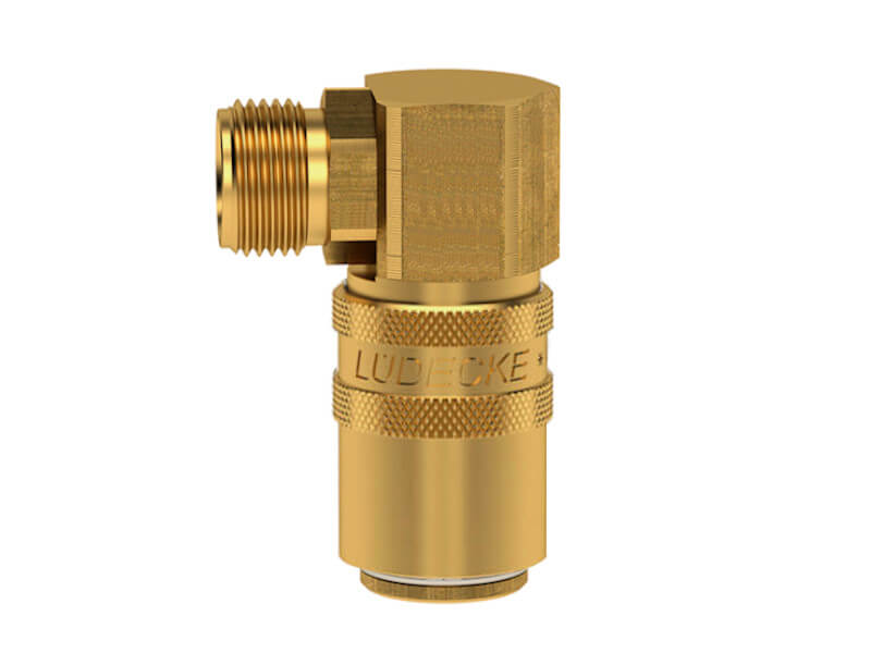 Gniazdo szybkozłączki z gwintem zewnętrznym, wykonane z mosiądzu (MS 58), z elementami ze stali szlachetneji uszczelnieniem z gumy fluorowej (FKM).