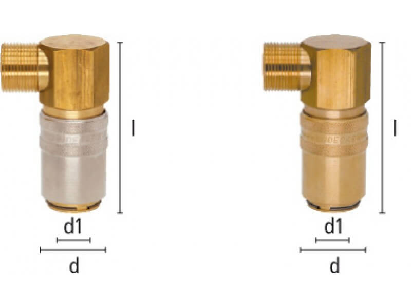 Szybkozłączki z serii ESHG o DN 13 i średnicy wtyku 19 mm charakteryzują się bardzo wysokim natężeniem przepływu przy jednoczesnym niskim spadku ciśnienia. Część A-90 posiada z jednej strony gniazdo, a z drugiej gwint zewnętrzny pod kątem 90°. Gwinty z wewnętrznym stożkiem wg DIN 3863. Gniazda bez zaworu, można stosować tylko z wtykami bez zaworu. W wersji bez zaworu przewody przy rozpięciu będą ciekły.