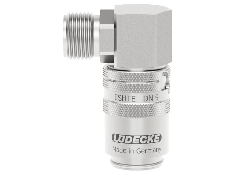 Szybkozłączki z serii ESHTE o DN 9 i średnicy wtyku 13 mm charakteryzują się bardzo wysokim natężeniem przepływu przy jednoczesnym niskim spadku ciśnienia. Część AL90 (AL90AB) posiada z jednej strony gniazdo, a z drugiej gwint zewnętrzny ze stożkiem wewnętrznym wg DIN 3863, ustawiony pod kątem 90º. Gniazda te w wersji z zaworem można łączyć zarówno z wtykami z zaworem, jak i bez, gdyż posiadają one iglicę, która otworzy zawór wtyku. Gniazda bez zaworu, można stosować tylko z wtykami bez zaworu. W zależności od zastosowanych wersji z zaworami, lub bez, przewody przy rozpięciu będą ciekły (bez zaworu) lub medium zostanie w przewodzie (zawór odcinający).