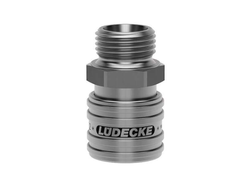 Gniazdo szybkozłącza jednostronnie odcinającego z gwintem zewnętrznym wykonane ze stali szlachetnej (nierdzewnej) i uszczelnieniem z Vitomu (FKM).