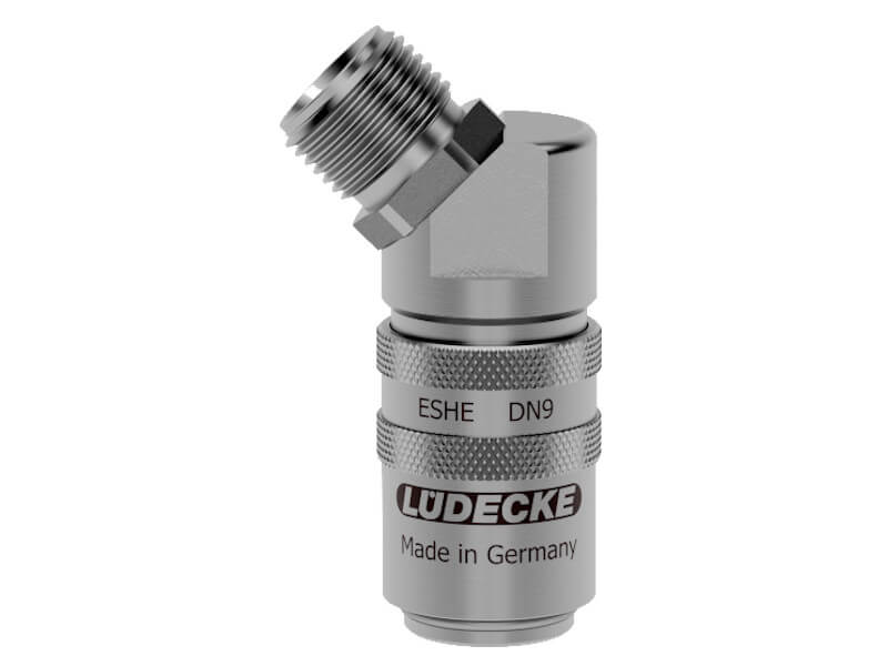 Szybkozłączki z serii ESHE o DN 9 i średnicy wtyku 13 mm charakteryzują się bardzo wysokim natężeniem przepływu przy jednoczesnym niskim spadku ciśnienia. Część A-45 (A-45AB) posiada z jednej strony gniazdo, a z drugiej gwint zewnętrzny z wewnętrznym stożkiem wg DIN 3863, ustawiony pod kątem 45º. Gniazda te w wersji z zaworem można łączyć zarówno z wtykami z zaworem, jak i bez, gdyż posiadają one iglicę, która otworzy zawór wtyku. Gniazda bez zaworu, można stosować tylko z wtykami bez zaworu. W zależności od zastosowanych wersji z zaworami, lub bez, przewody przy rozpięciu będą ciekły (bez zaworu) lub medium zostanie w przewodzie (zawór odcinający).