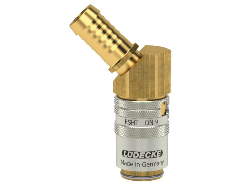 Szybkozłączki z serii ESHT o DN 9 i średnicy wtyku 13 mm charakteryzują się bardzo wysokim natężeniem przepływu przy jednoczesnym niskim spadku ciśnienia. Część TL45 posiada z jednej strony gniazdo, a z drugiej króciec do węża pod kątem 45°. Gniazda bez zaworu, można stosować tylko z wtykami bez zaworu. W wersji bez zaworu przewody przy rozpięciu będą ciekły. Można łączyć z wtykami z serii ESH.
