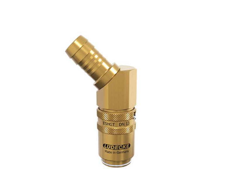 Szybkozłączki z serii ESHGT o DN 13 i średnicy wtyku 19 mm charakteryzują się bardzo wysokim natężeniem przepływu przy jednoczesnym niskim spadku ciśnienia. Część TL45AB posiada z jednej strony gniazdo, a z drugiej króciec do węża pod kątem 45°. Gniazda te w wersji z zaworem można łączyć zarówno z wtykami z zaworem, jak i bez, gdyż posiadają one iglicę, która otworzy zawór wtyku. W wersji z zaworami przewody przy rozpięciu nie będą ciekły, a zostanie w przewodzie. Można łączyć z wtykami z serii ESHG.