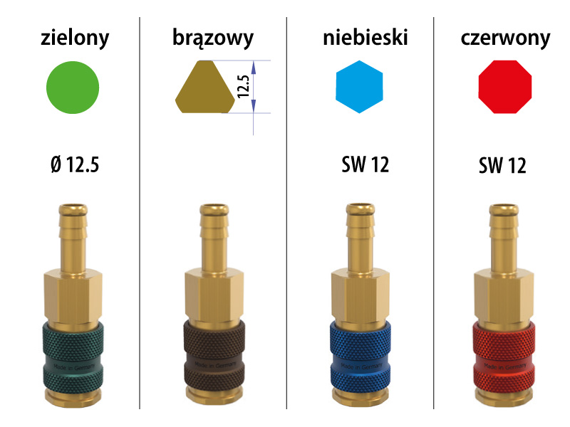 Poniżej przedstawiono instrukcję obsługi i zasadę działania kolorowych i kodowanych szybkozłączek.