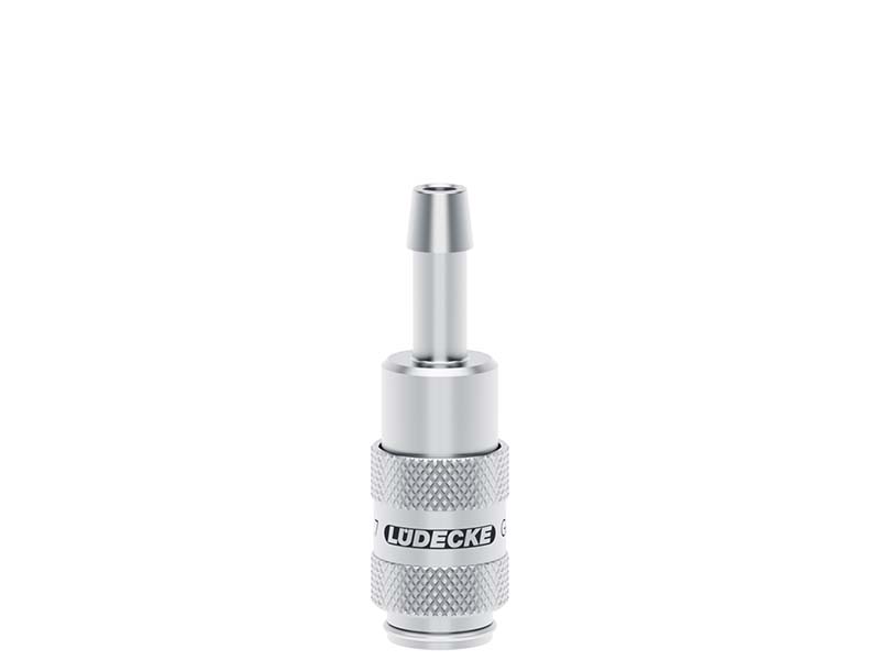Gniazdo szybkozłącza jednostronnie odcinającego z króćcem do węża wykonane ze stali szlachetnej (nierdzewnej) i uszczelnieniem z Vitomu (FKM).