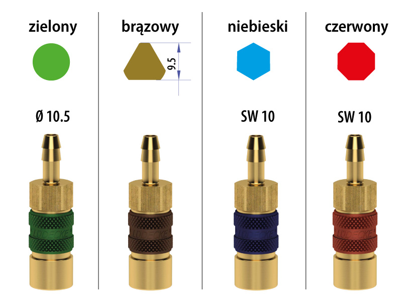 Poniżej przedstawiono instrukcję obsługi i zasadę działania kolorowych i kodowanych szybkozłączek.