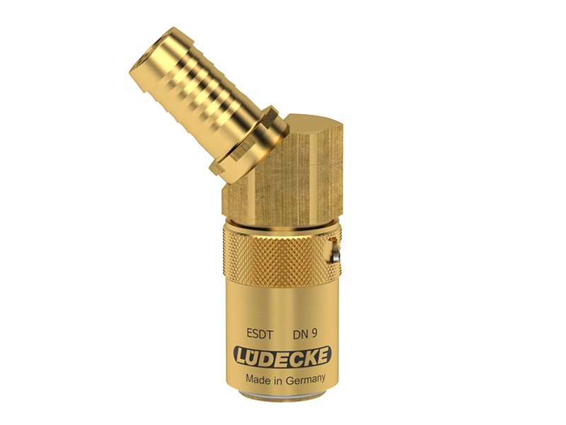 Szybkozłączki z serii ESDT o DN 9 i średnicy wtyku 13,5 mm charakteryzują się bardzo wysokim natężeniem przepływu przy jednoczesnym niskim spadku ciśnienia. Część TL45AB posiada z jednej strony gniazdo, a z drugiej króciec do węża pod kątem 45°. Gniazda te w wersji z zaworem można łączyć zarówno z wtykami z zaworem, jak i bez, gdyż posiadają one iglicę, która otworzy zawór wtyku. W wersji z zaworami przewody przy rozpięciu nie będą ciekły, a medium zostanie w przewodzie. Można łączyć z wtykami z serii ESD.