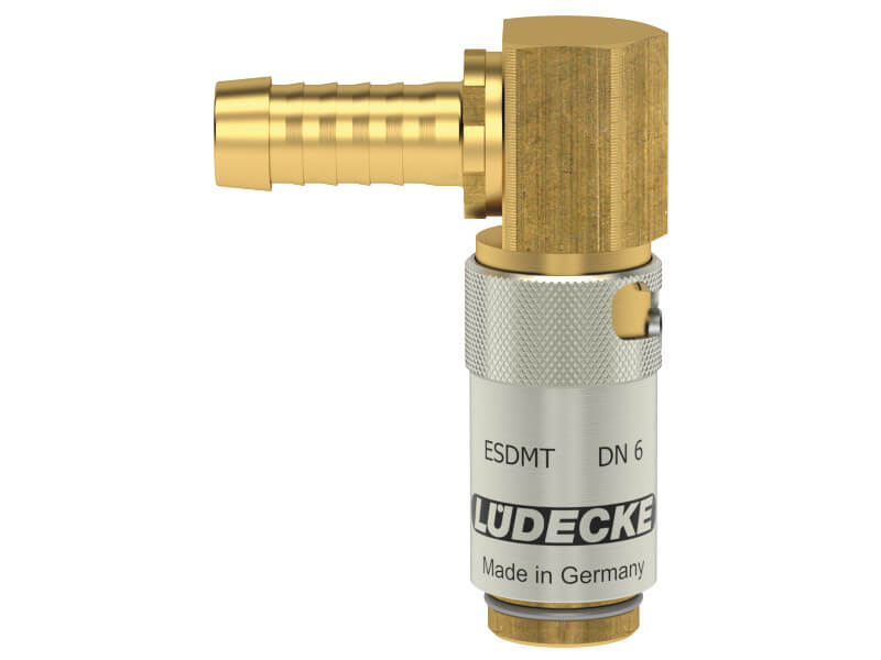 Szybkozłączki z serii ESDMT o DN 6 i średnicy wtyku 9,4 mm charakteryzują się bardzo wysokim natężeniem przepływu przy jednoczesnym niskim spadku ciśnienia. Część TL90 posiada z jednej strony gniazdo, a z drugiej króciec do węża pod kątem 90°. Gniazda bez zaworu, można stosować tylko z wtykami bez zaworu. W tej wersji przewody przy rozpięciu będą ciekły. Można łączyć z wtykami z serii ESDM.