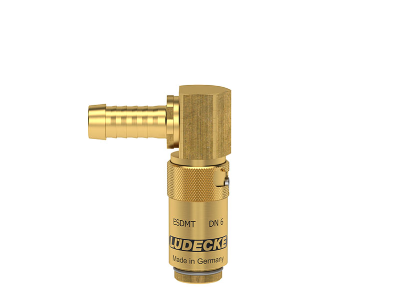 Szybkozłączki z serii ESDMT o DN 6 i średnicy wtyku 9,4 mm charakteryzują się bardzo wysokim natężeniem przepływu przy jednoczesnym niskim spadku ciśnienia. Część TL90AB posiada z jednej strony gniazdo, a z drugiej króciec do węża pod kątem 90°. Gniazda te w wersji z zaworem można łączyć zarówno z wtykami z zaworem, jak i bez, gdyż posiadają one iglicę, która otworzy zawór wtyku. W wersji z zaworami przewody przy rozpięciu będą ciekły, a medium zostanie w przewodzie (zawór odcinający). Można łączyć z wtykami z serii ESDM.