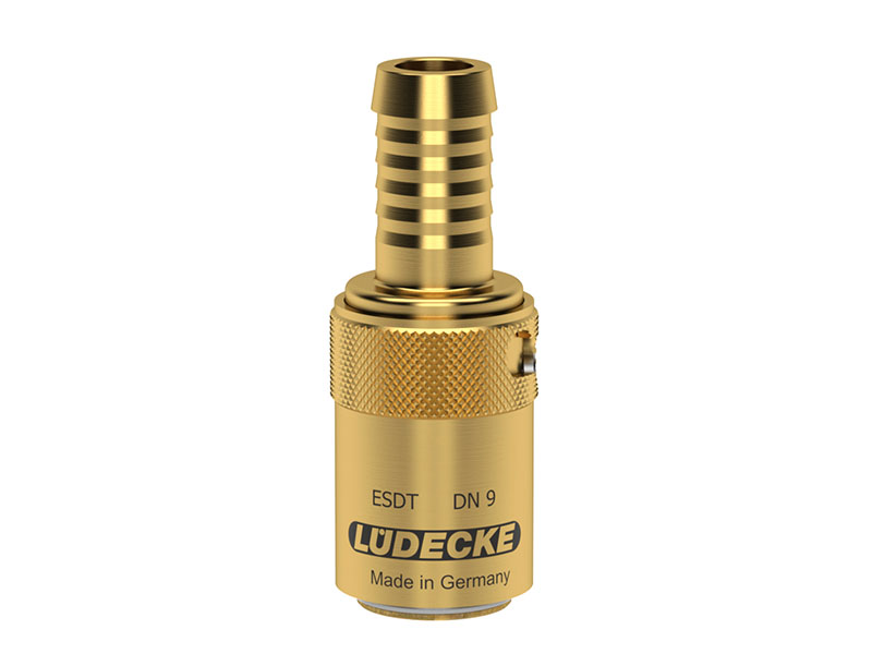 Szybkozłączki z serii ESDT o DN 9 i średnicy wtyku 13,5 mm charakteryzują się bardzo wysokim natężeniem przepływu przy jednoczesnym niskim spadku ciśnienia. Część TLAB posiada z jednej strony gniazdo, a z drugiej króciec do węża. Gniazda te w wersji z zaworem można łączyć zarówno z wtykami z zaworem, jak i bez, gdyż posiadają one iglicę, która otworzy zawór wtyku. W wersji z zaworami przewody przy rozpięciu nie będą ciekły, a medium zostanie w przewodzie. Szybkozłączki można łączyć z wtykami z serii ESD.