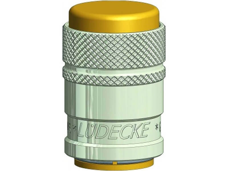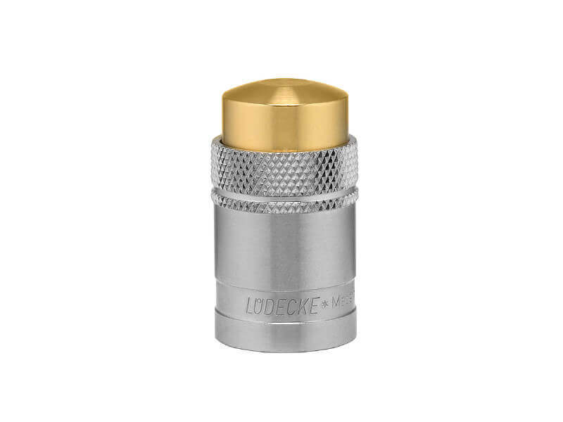 Gniazdo szybkozłączki zaślepiającej, wykonane z mosiądzu (MS 58), z elementami ze stali szlachetnej, mosiądzu niklowanego i uszczelnieniem z gumy fluorowej (FKM).