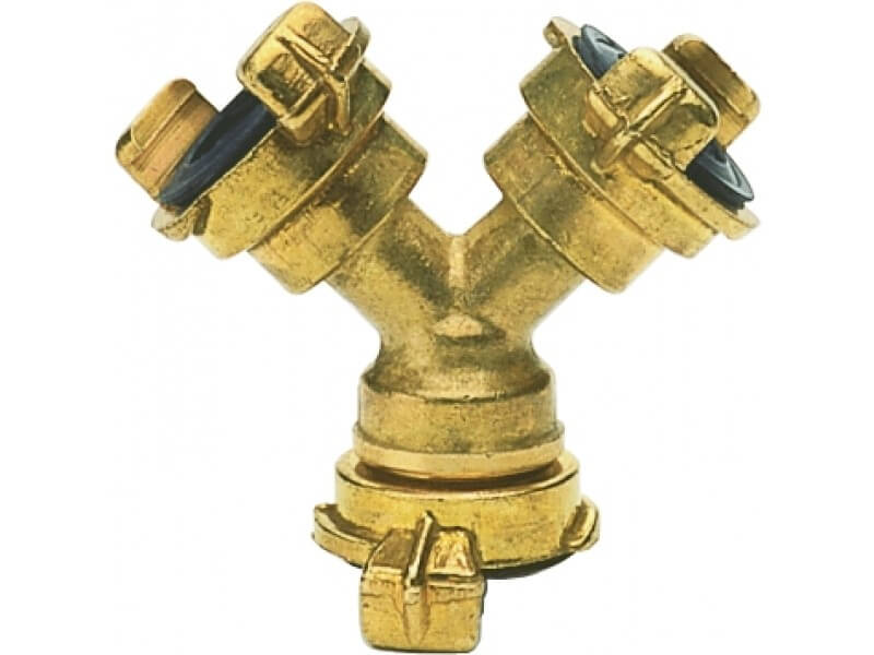 Trójnik "Y" do złączy kłowych Geka zbudowane jest z mosiądzu, z czarnymi uszczelkami z NBR.
