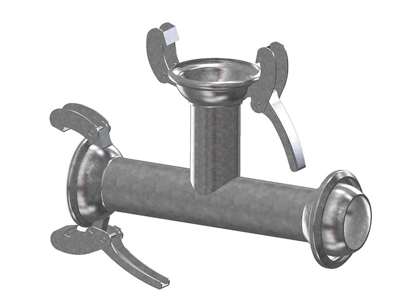 Element posiada dwa gniazda żeńskie, z dwoma zaczepami oraz wtyk męski, i służy do rozbudowy instalacji i systemów przesyłowych.