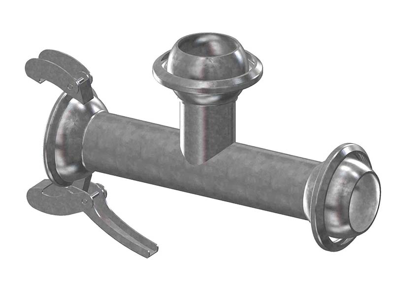 Trójnik T ANFOR typ A30M z częściami męskimi i żeńską wykonane ze stali ocynkowanej, z uszczelnieniem gumowym z mieszanki NR/SBR (na życzenie EPDM)..