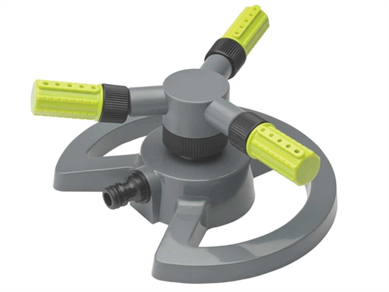 Zraszacz zbudowany jest z plastiku. Posiada uniwersalny wtyk ogrodowy kompatybilny ze wszystkimi systemami ogrodowymi.