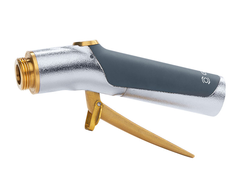 Rękojeść do lanc nawadniających GEKA® Plus Soft Rain, wykonana z aluminium i mosiądzu, z elementami z mosiądzu chromowanego, stali szlachetnej, tworzyw sztucznych i z EPDM.