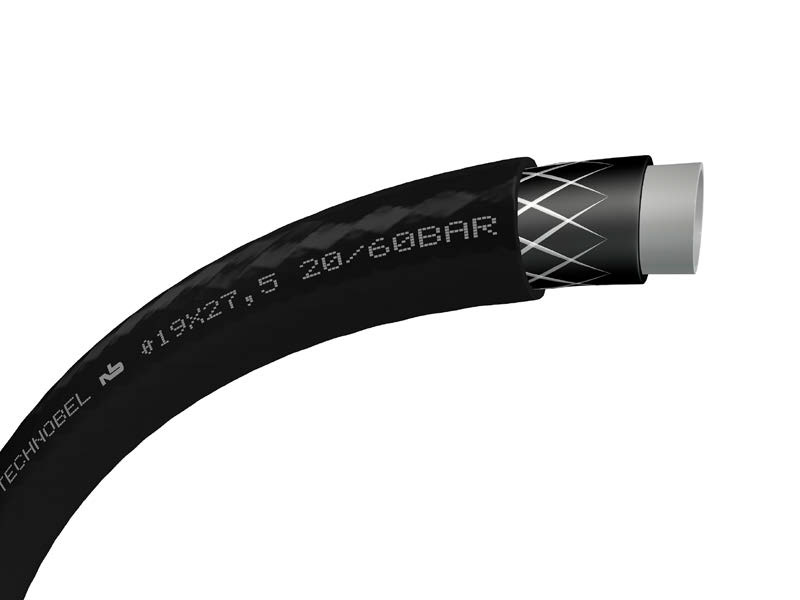 Wewnętrzna warstwa węża TECHNOBEL® wykonana jest z elastomeru poliestrowego (TPE-E), natomiast zewnętrzna to PVC, wzmocniony siatką poliestrową.