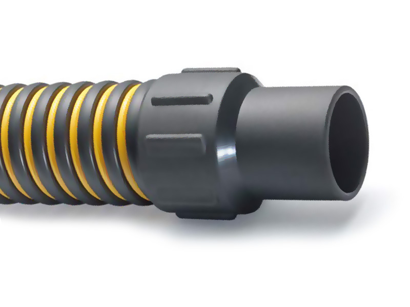 Wąż wykonany z Polietylenu, który charakteryzuje się przede wszystkim dużą elastycznością, dzięki czemu elementy z niego wykonane są odporne na duże naprężenia. Polietylen ma słabszą odporność na wysokie temperatury (w porównaniu do PA), natomiast znacznie lepiej radzi sobie z bardzo niskimi, ujemnymi temperaturami. Z powodzeniem stosuje się go w wyrobach, które wymagają naprężenia i odgięcia, np. w elementach zabezpieczających i ochronnych czy właśnie w przewodach. Tego samego materiału również używa się do budowy przenośnych toalet bezodpływowych, a zwłaszcza pojemników na nieczystości.