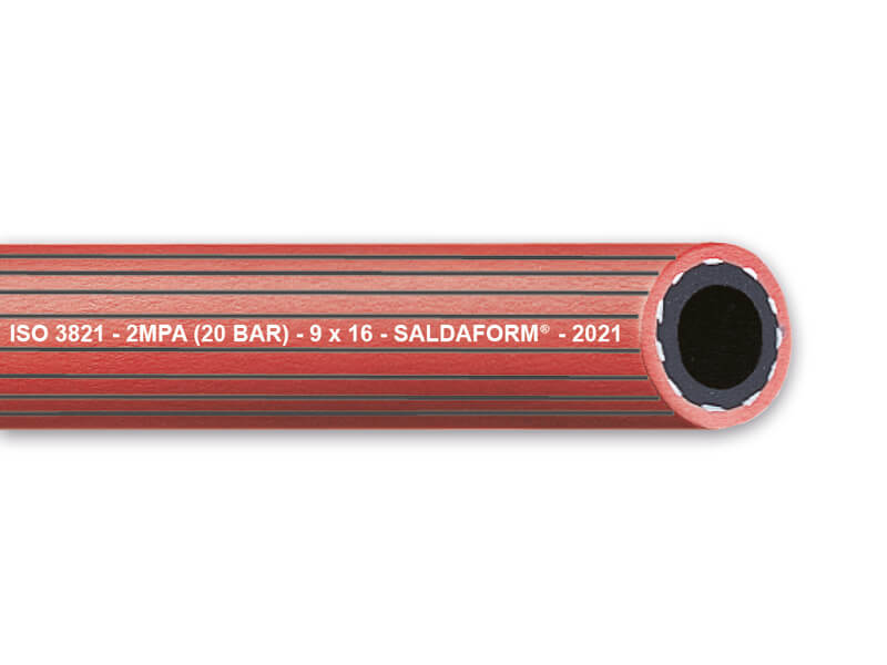 Wąż SALDAFORM®/RED (ryflowany) jest bardzo elastyczny przeznaczony do transportu acetylenu. Wąż stosuje się w procesach spawania i cięcia. Nadaje się do spawania łukiem plazmowym w procesie PAW z użyciem gazu osłonowego i innych podobnych procesów. Wężem można również przesyłać takie gazy jak: wodór, gaz węglowy (mieszanina tlenku węgla i gazowego wodoru), dwutlenk węgla, argon, azot do spawania i cięcia.
