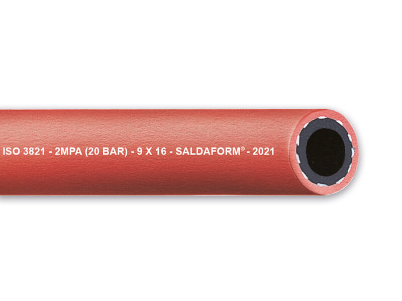 Wąż SALDAFORM®/RED (gładki) jest bardzo elastyczny przeznaczony do transportu acetylenu. Wąż stosuje się w procesach spawania i cięcia. Nadaje się do spawania łukiem plazmowym w procesie PAW z użyciem gazu osłonowego i innych podobnych procesów. Wężem można również przesyłać takie gazy jak: wodór, gaz węglowy (mieszanina tlenku węgla i gazowego wodoru), dwutlenk węgla, argon, azot do spawania i cięcia.