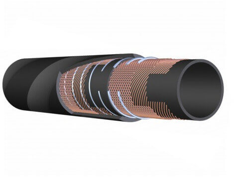 Wąż ADARA 15 EPDM Ω/T SD zbudowany jest z warstw kauczuku EPDM przewodzących elektryczność, z wzmacniającymi kinstrukcje siatkami tekstylnymi i spiralą ze stali ocynkowanej.