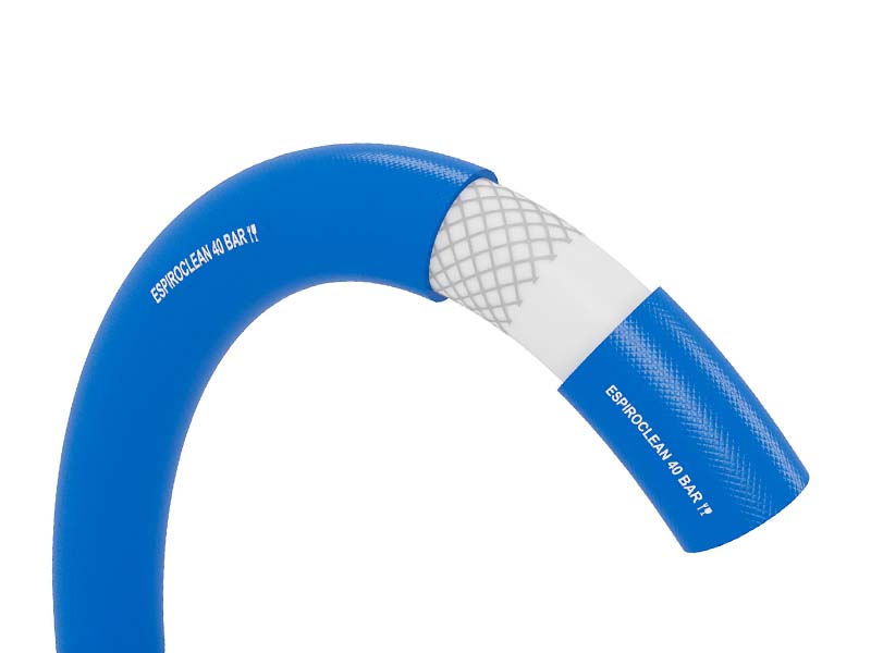 Wielowarstwowa konstrukcja węża ESPIROCLEAN jest wzmocniona poliestrową siatką, co sprawia, że jest wyjątkowo wytrzymały i odporny na uszkodzenia mechaniczne. Może wytrzymać wysokie ciśnienie pracy, zapewniając skuteczne i niezawodne działanie.
