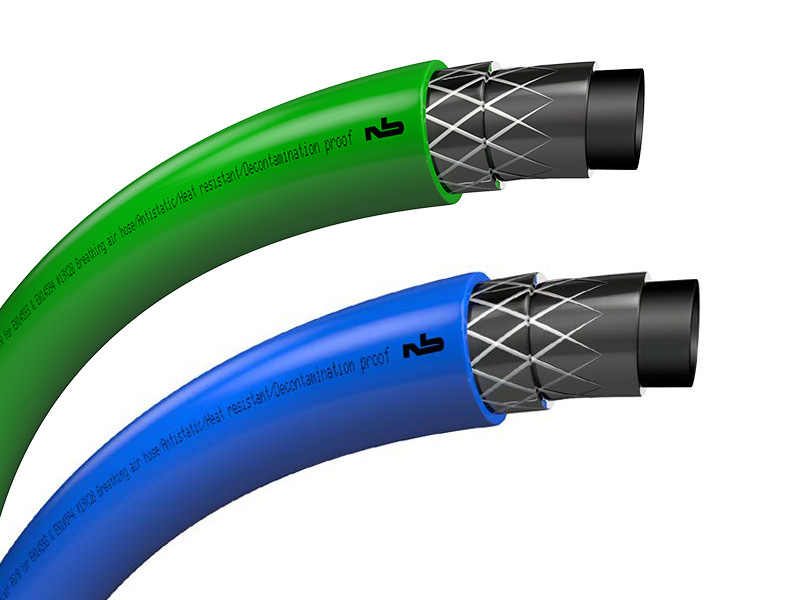 Model NOBELAIR® AS/R to specjalistyczny wąż przeznaczony do dostarczania powietrza do oddychania, spełniający wymagania norm EN 14593 i EN 14594, które dotyczą aparatów oddechowych zasilanych sprężonym powietrzem. Produkt ten łączy komfort użytkowania z wyjątkową wytrzymałością w najtrudniejszych warunkach pracy. Wąż posiada matowe pokrycie z PVC, odporne na oleje, tłuszcze i węglowodory, a jego wewnętrzna ściana z czarnego antystatycznego PVC zapewnia skuteczną ochronę elektrostatyczną. Konstrukcja węża gwarantuje doskonałą stabilność rozmiarową pod ciśnieniem, zgodną z normami dotyczącymi sprzętu ochrony dróg oddechowych. Dzięki elastyczności i lekkości, NOBELAIR® AS/R minimalizuje ograniczenia ruchu, co podnosi komfort użytkowania przy długotrwałej pracy.