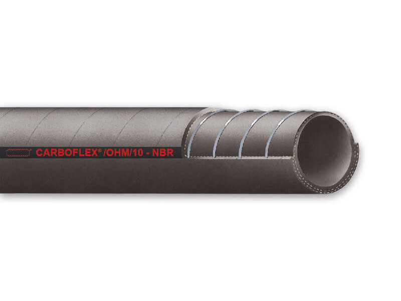 CORBOFLEX®/OHM/10 to bardzo wysokiej jakości, wytrzymały i elastyczny wąż ssawno-tłoczny ze stalową spiralą. Doskonale sprawdza się przy ciężkich warunkach pracy. Stosowany jako wąż do cystern paliwa, do czyszczenia przemysłowego. Wąż spełnia wszystkie wytyczne SIR i może być używany w różnych strefach ATEX. Wąż jest często używany podczas załadunku i rozładunku zbiorników, zbiorników paliwowych i statków. Można nim przesyłać paliwa bezołowiowe o maksymalnej zawartości węglowodorów aromatycznych do 50%. Nadaje się do olejów przemysłowych, olejów opałowych, biodiesla i mineralnych olejów hydraulicznych.